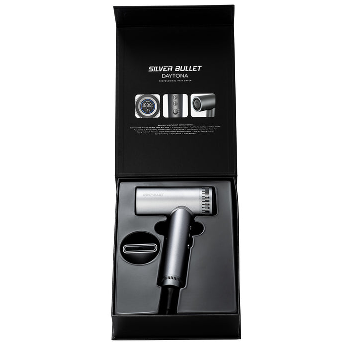 Blow-drying is a race. Silver Bullet Daytona Hair Dryer is faster and better. Move beyond traditional hair dryers and elevate your blow-dry with a brilliantly lightweight, compact hair dryer. Enjoy high speed, digital technology and self-cleaning functionality.
